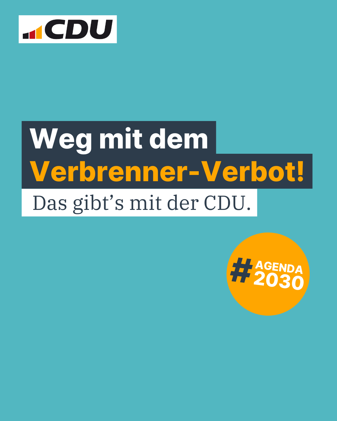 22.01.2025 Bild-DateiWeg mit dem Verbrenner-Verbot! (4:5) (83 KB) Empfehlen Sie uns!Bei Facebook teilen Bei Twitter (X) teilen Bei Whatsapp teilen Empfehlen Sie uns!Bei Facebook teilen Bei Twitter (X) teilen Bei Whatsapp teilen